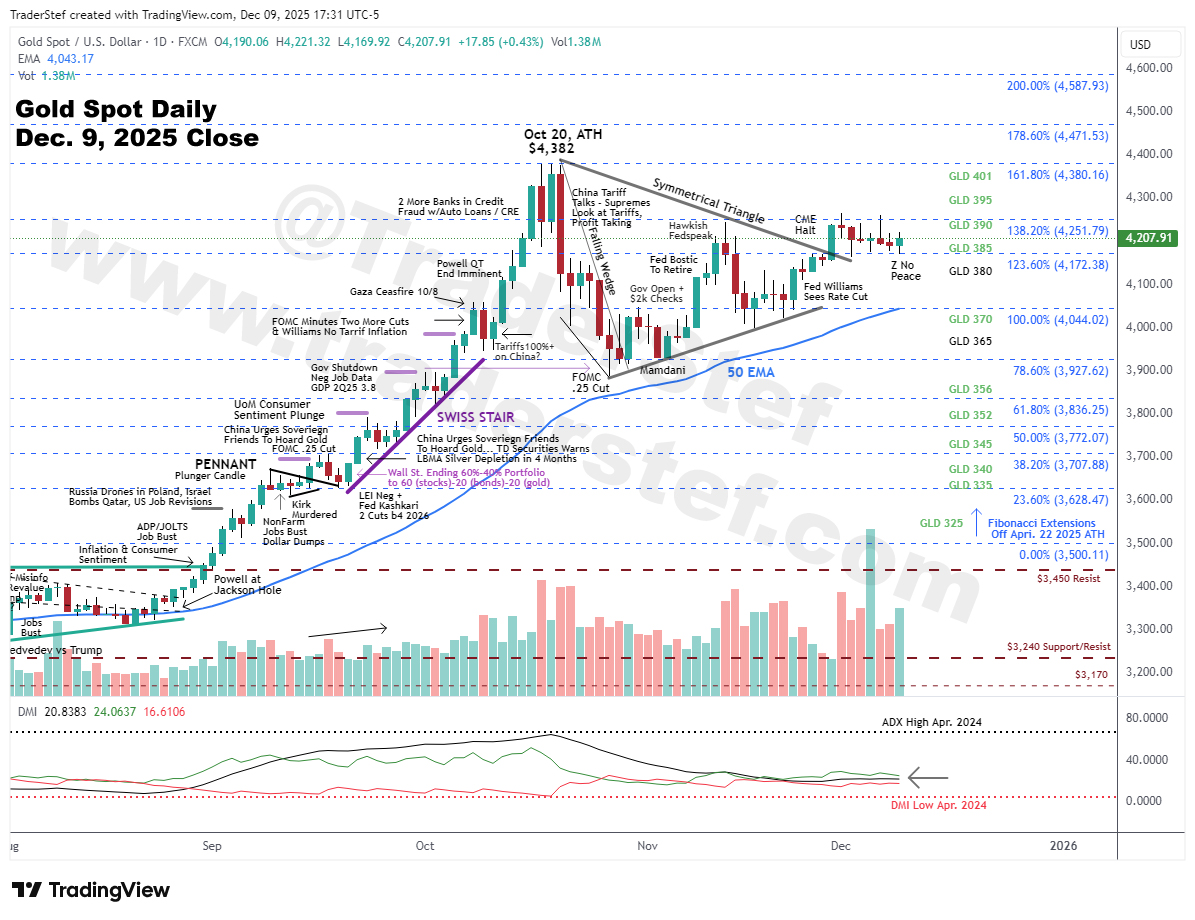 Gold Spot daily chart Dec. 9, 2025, 5pm ET close…