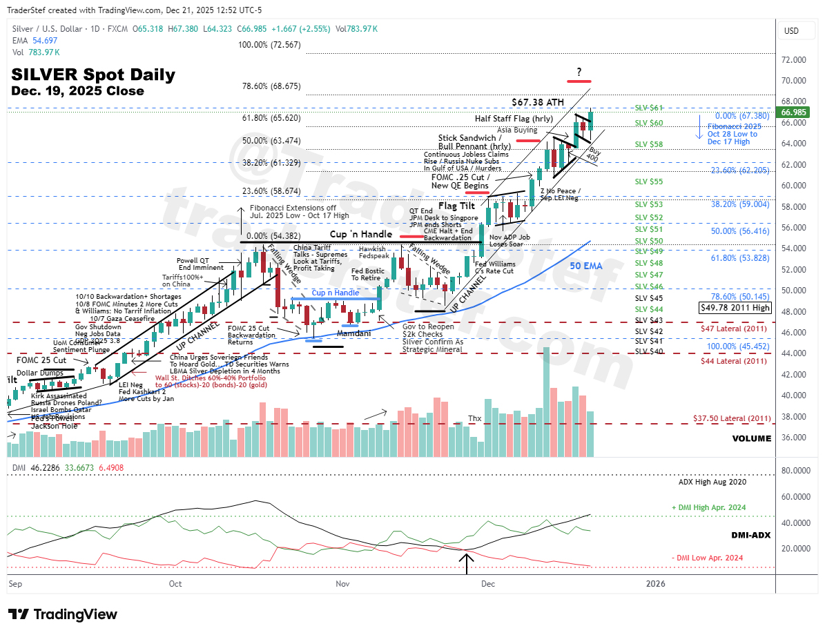 Silver Spot daily chart Dec. 19. 2025, Close (X thread) – mouse over/select to enlarge…