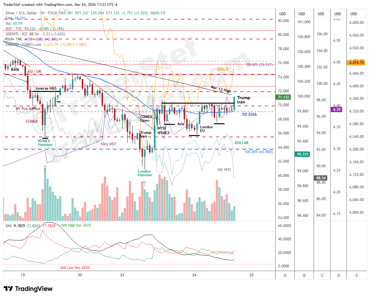 Silver Spot hourly chart Mar 24, 2026, 5pm Close (X thread) – mouse over/select to enlarge…