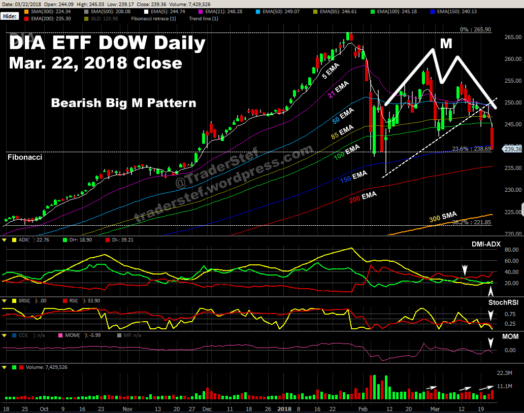 $DIA SPDR Dow Jones Industrial Average ETF Daily, Mar. 22, 2018 Close…