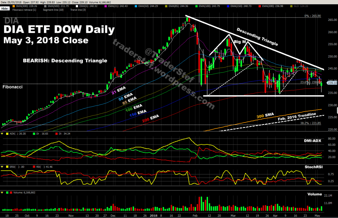 “Analysis on the $DIA is identical to the $SPY. Outlook for the chart is Bearish.”