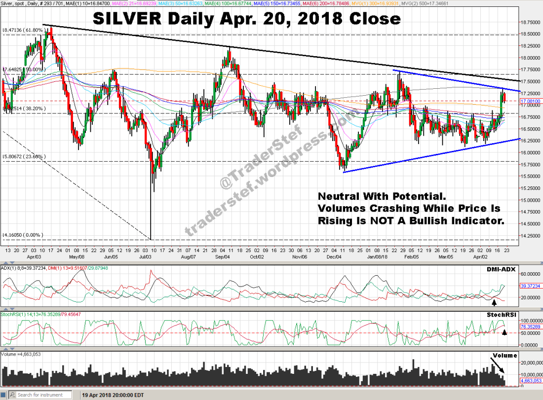 Silver spot daily chart close-up, Apr. 20, 2018 close…