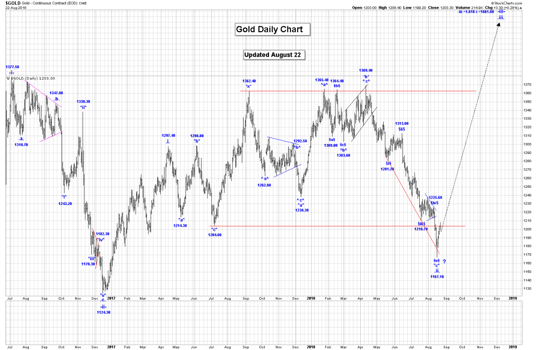 Lastly, here is an Elliott Wave count for gold from CaptainWave via 321Gold on Aug. 23…