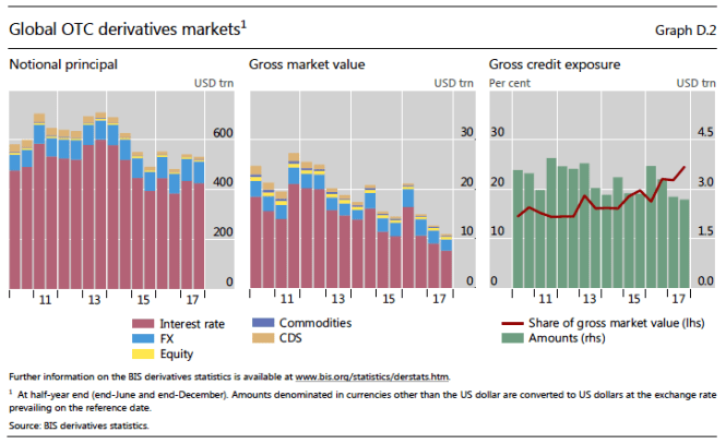 Regulations put into place post-crisis do not appear to be draining any leverage out of the shadows. For an in-depth mind-blower on the current state of the “notional” (Merriam-Webster: “existing in the mind only”) derivatives market, skim the BIS review noted below.