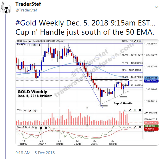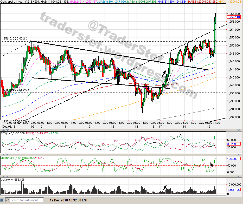 Posted on Twitter– Gold Hourly Chart December 19, 2018 10:30am EST exclusive update for followers….