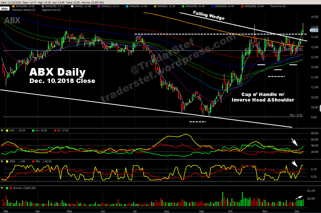 ABX – Barrick Gold daily chart, Dec. 10, 2018 close…