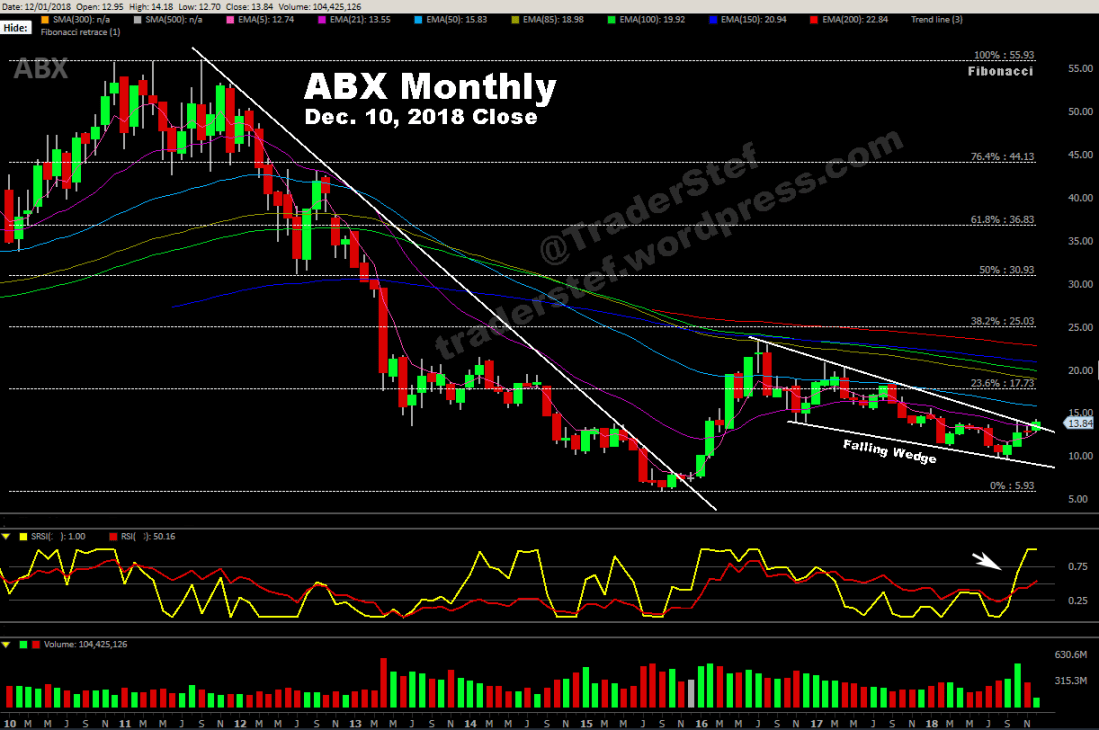 ABX monthly chart, Dec. 10, 2018 close…