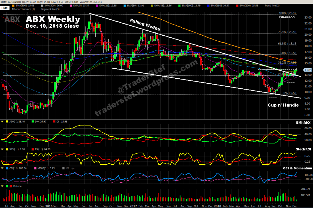 ABX weekly chart, Dec. 10, 2018 close…