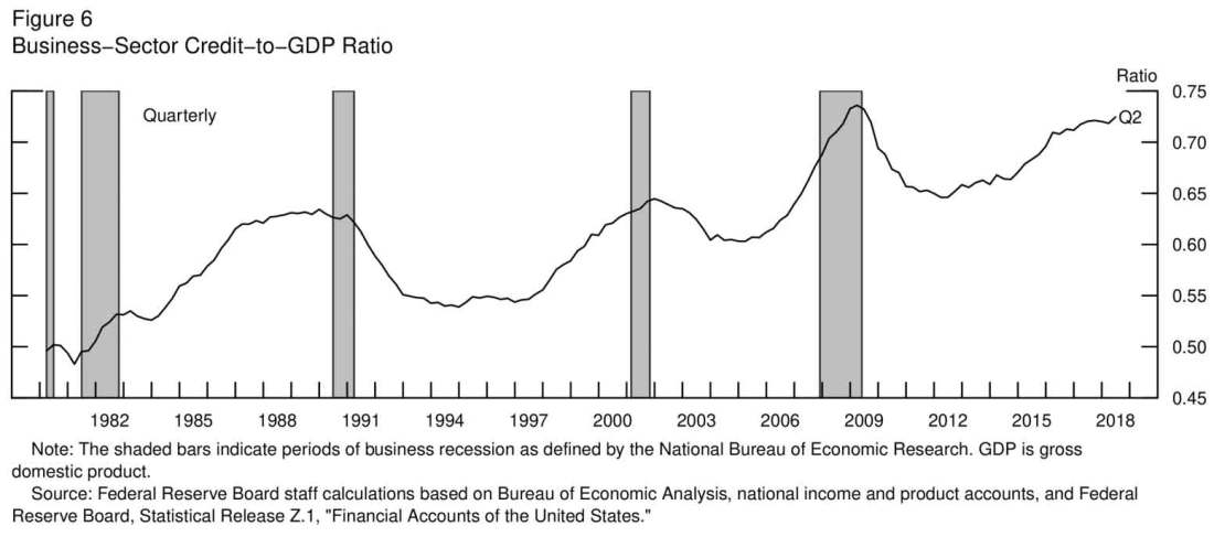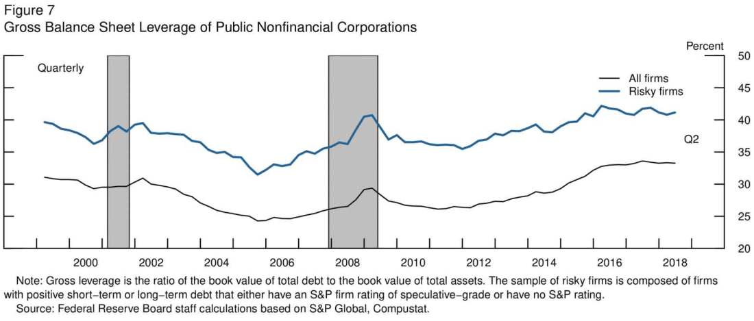 Lael Brainard, a member of the Board of Governors of the Federal Reserve System, presented her insights with “Assessing Financial Stability over the Cycle” on December 7, 2018, at the Peterson Institute for International Economics. Listen carefully and remain focused on corporate debt and leverage from timestamp 11:58 to 21:35 in the video. For ease of viewing, you will find the three charts from that portion of the presentation just below the video. To view a larger version of any chart, right-click on it and choose your “view image” option.