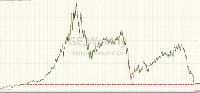 GE stocks plunged once again to its ominous closing low from March 2009 of $6.66… “GE share price is now unchanged since October 1992” – ZeroHedge, Dec. 11