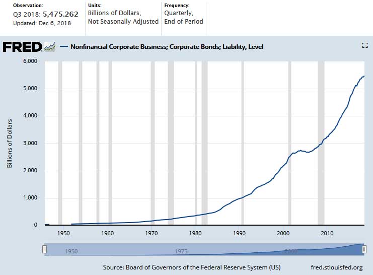 Here is a graphic from FRED of the nonfinancial corporate business and bonds liability level as of Dec. 6, 2018.