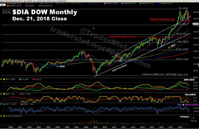 Dow $DIA ETF monthly chart as of Dec. 21, 2018 close…