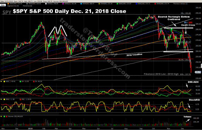 S&P 500 SPDR $SPY ETF daily chart as of Dec. 21, 2018 close…