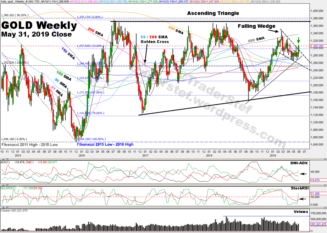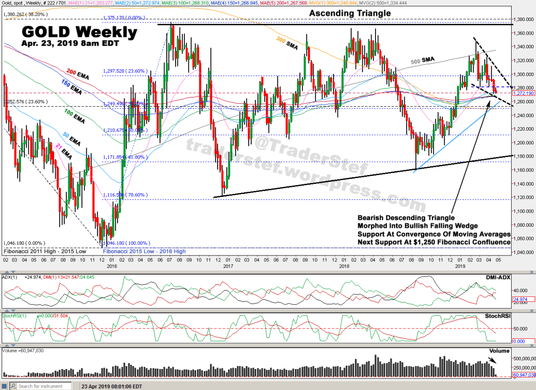 Gold weekly chart as of Apr. 23, 2019 at 8am EDT…