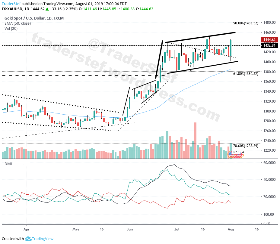 Once is an accident, twice is a coincidence, and three times is a pattern. There were a couple more messages the next day, but I think I have made my point for the topic at hand. It is also important to note that on my first day back at work for a full day in my office, gold rallied hard. The 5pm FOREX close was $1,444 per ounce. Silver also found its legs and began playing catch-up with its big brother.