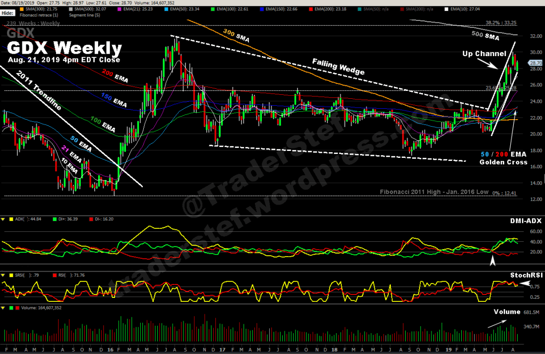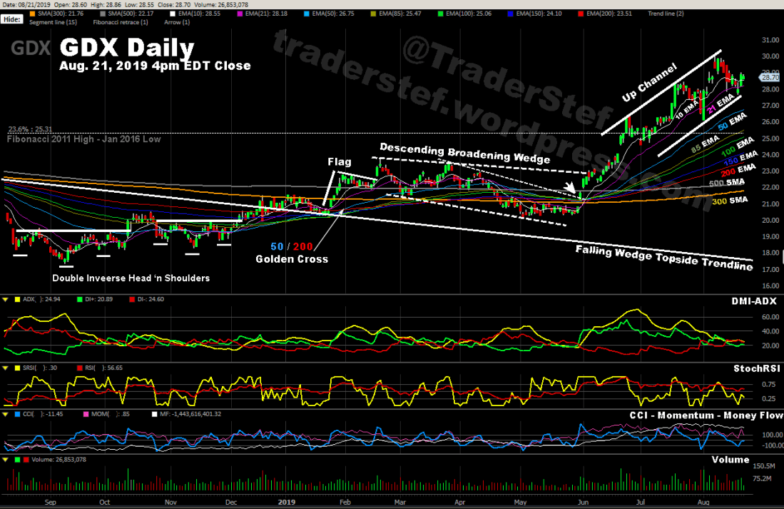 GDX weekly and daily chart as of Aug. 21, 2019, 4pm EDT close…