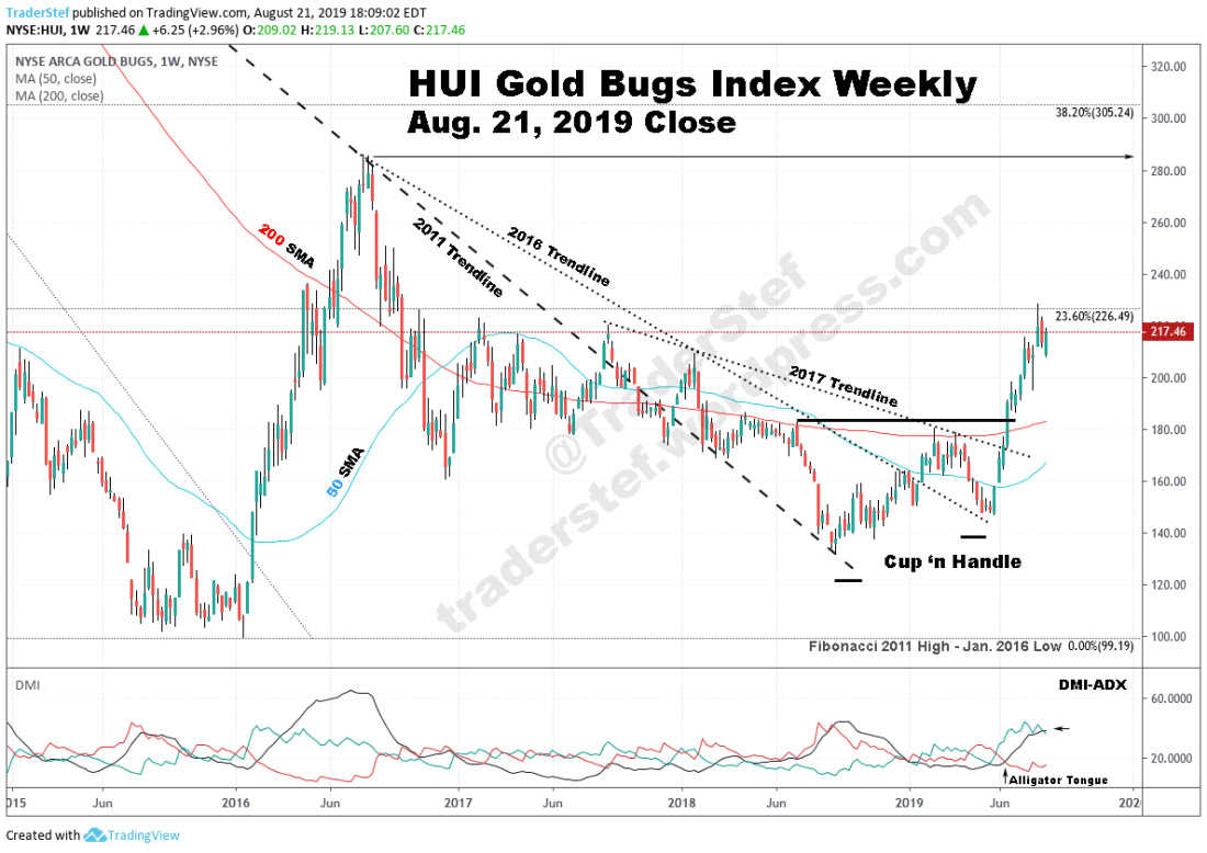 Twelve weeks ago, I published “Minding the Gold Mining Stocks and GDX” and followed that analysis with “Gold Mining Stock Poker and the Gold Bugs Index Breakout” on Jun. 21. A list of mining equities to consider were included, along with the $GDX and $HUI Gold Bugs Index. In case you missed it, my latest technical analysis on gold can be found at “NIRP Supports Gold’s Explosive Rally with Ultra-Bears and Ghosts in the Asylum,” published on Aug. 15. To view a larger version of any chart, right-click on it and choose your “view image” option.