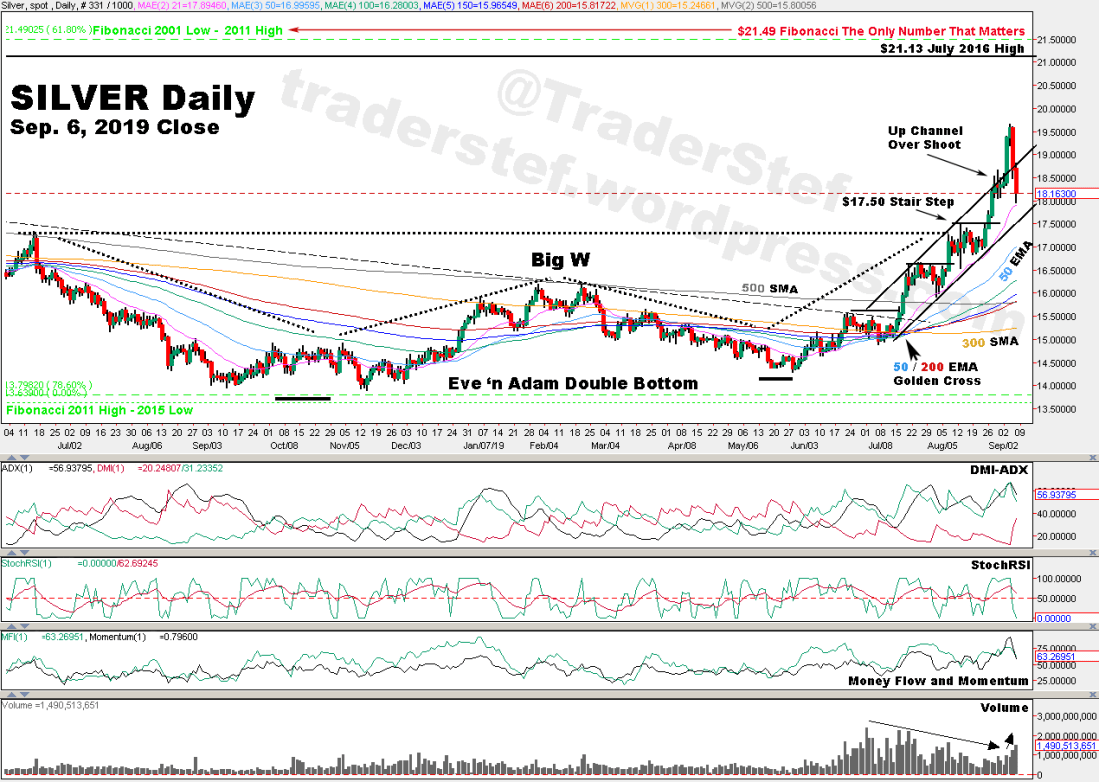 Silver daily chart as of Sep. 6, 2019 close…