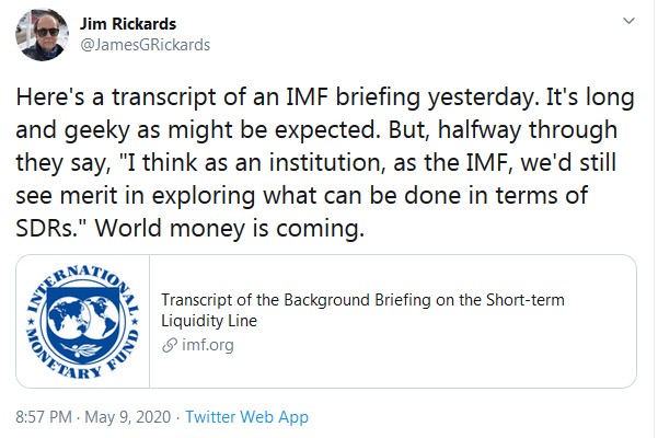 “World money is coming” / transcript of IMF briefing – Jim Rickards, May 9