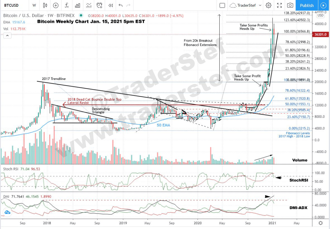 Bitcoin Weekly Chart as of Jan. 15, 2021 at 5pm EST…