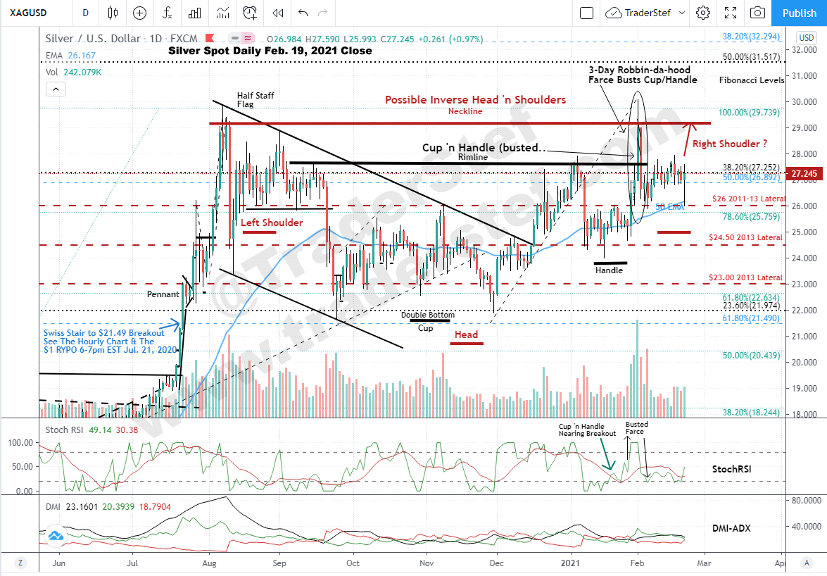 - Silver Spot Daily Chart as of Feb. 19, 2021 Close – by TraderStef for Feb. 21 Interview