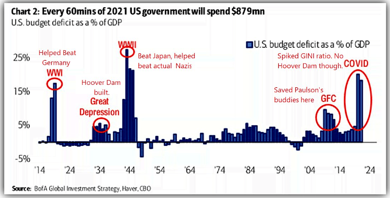 The recent sell-off in the bond market (rising yields) shows the limits of Modern Monetary Theory (MMT). MMT assumes that the U.S. government does not have to rely on taxes or sovereign debt issuance for spending, as it can print as much as it needs. It also assumes that a government budget is not the same as your household budget and should not be shaped by fears of a rising national debt clock. The U.S. national debt is officially at 28 trillion this evening, and Biden signed another pandemic related spending bill today with a 1.9 trillion price tag.