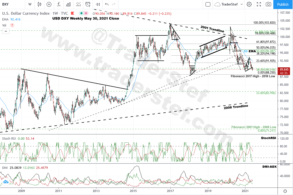 $DXY Spot USD weekly chart as of May 30, 2021 close…
