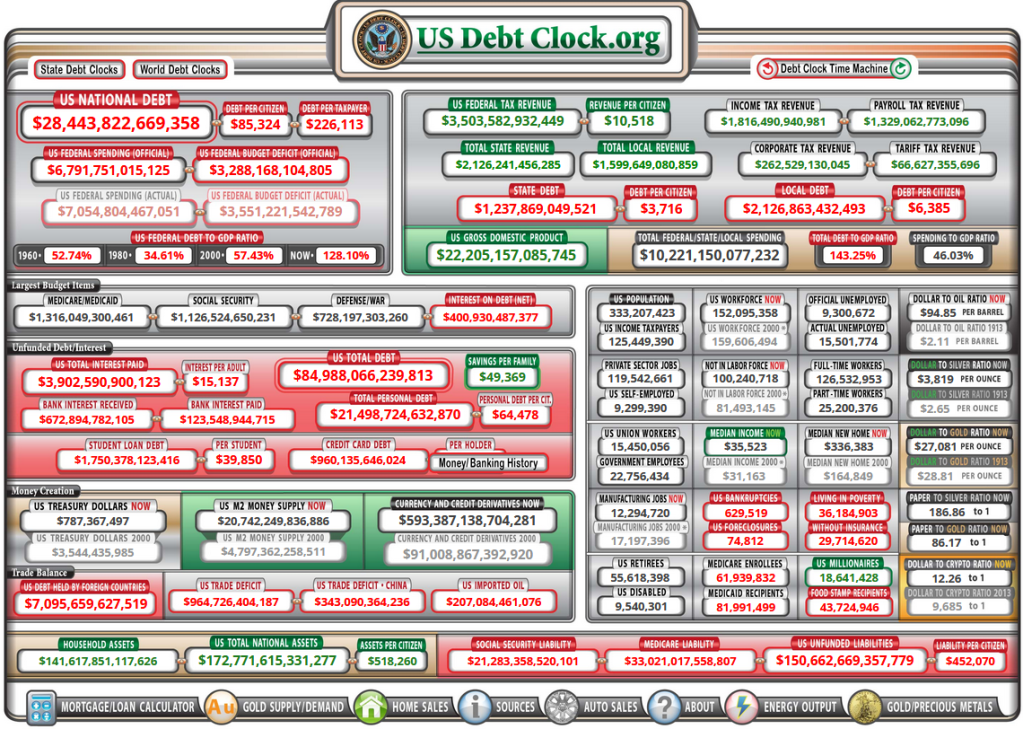 Debt-to-GDP Ratio… “As a rule, the higher a country’s debt-to-GDP ratio climbs, the higher its risk of default becomes. If a country defaults on its debt, it often triggers financial panic in domestic and international markets alike. A study by the World Bank found that countries whose debt-to-GDP ratios exceeds 77% for prolonged periods, experience significant slowdowns in economic growth. Pointedly, every percentage point of debt above 77% costs countries 1.7% in economic growth.” – Investopedia