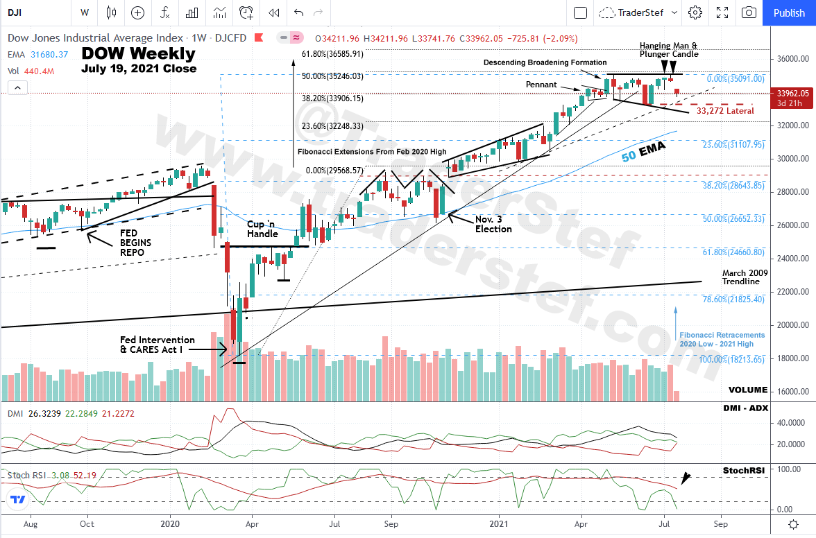 $DJIA Dow Jones Industrial Average weekly chart Jul. 19, 2021 close…