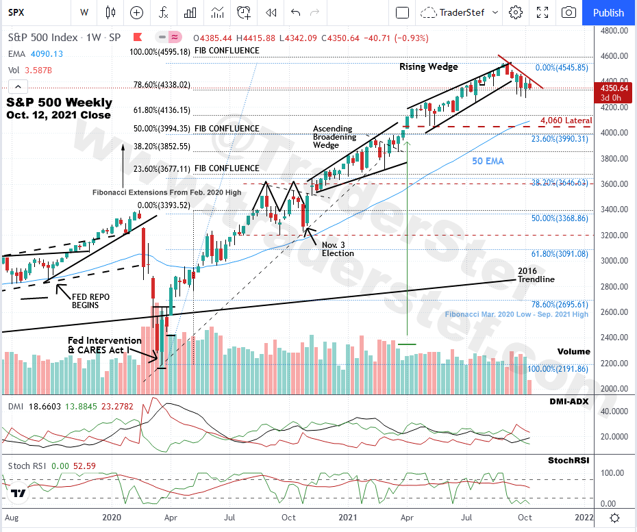 $SPX S&P 500 Index weekly chart as of Oct. 12, 2021 close…