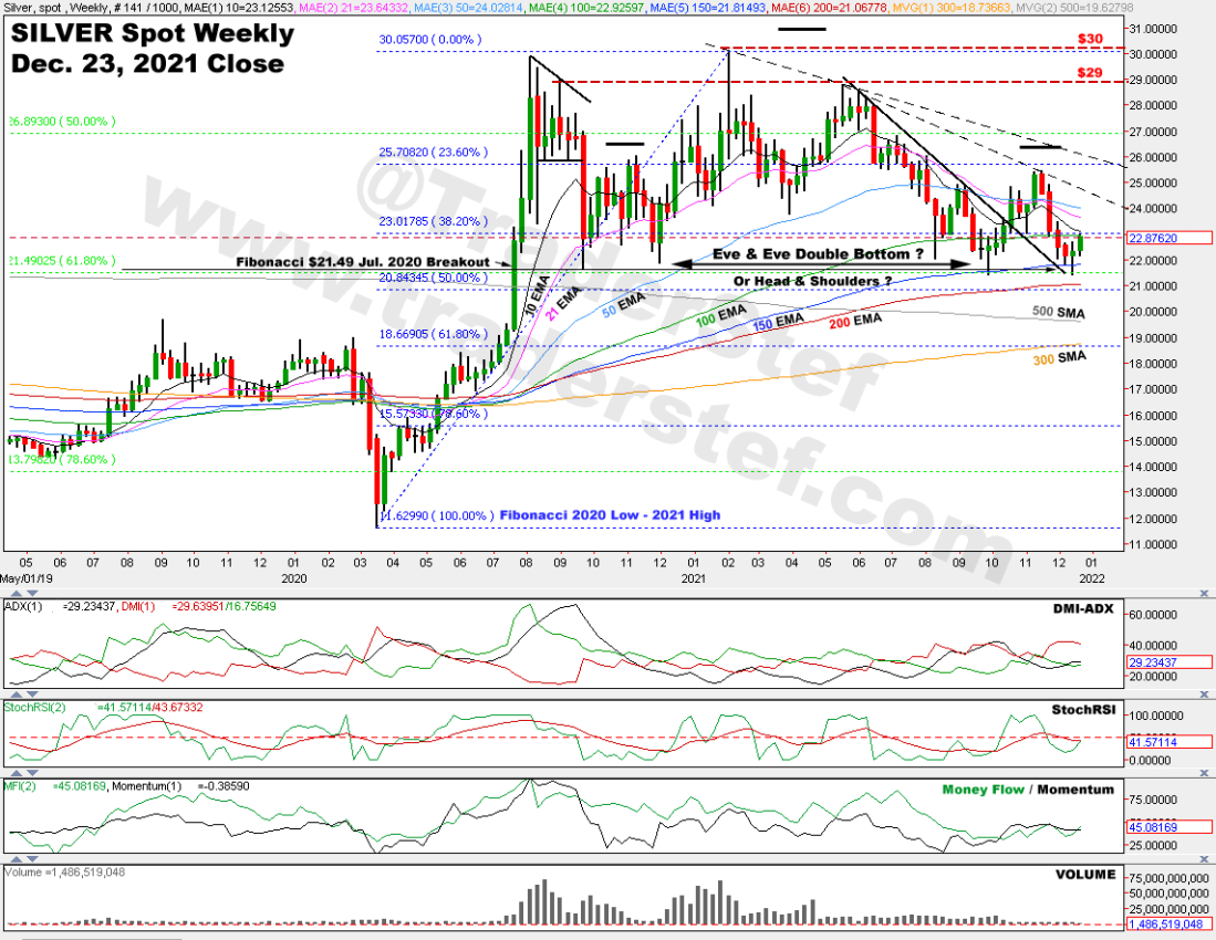 Silver Spot weekly chart as of Dec. 23, 2021 close…