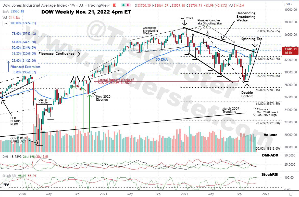 $DJI Dow Jones Industrial Index weekly chart as of Nov. 21, 2022, 4pm ET…