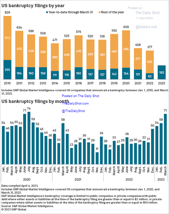 US corporate bankruptcies increased sharply in 1Q23 – The Daily Shot: