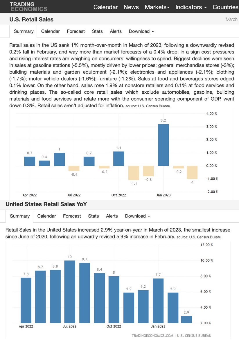 The big miss on U.S. retail sales in Mar. 2023 via Trading Economics: