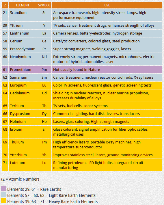 “Wherever you look in the world, and especially in electronics, REEs permeate the manufacturing of cell phones, televisions, automobiles, computers, monitor displays, superconductors, magnets, alloys, renewable energy, medical devices, caustic cleaning agents, specialized glass, anti-counterfeit embedding, aerospace, lasers, various high-tech military applications, and many more… There are 17 known REEs found on Earth, and the word ‘rare’ connotes scarcity, but they’re abundant all over the world in small amounts. The term ‘rare earth’ came from their original discovery as only tiny portions can be isolated from larger quantities of more common elements. There are 15 metallic chemical elements with atomic numbers from 57 to 71 (lanthanides) and similar elements scandium and yttrium.” – TraderStef