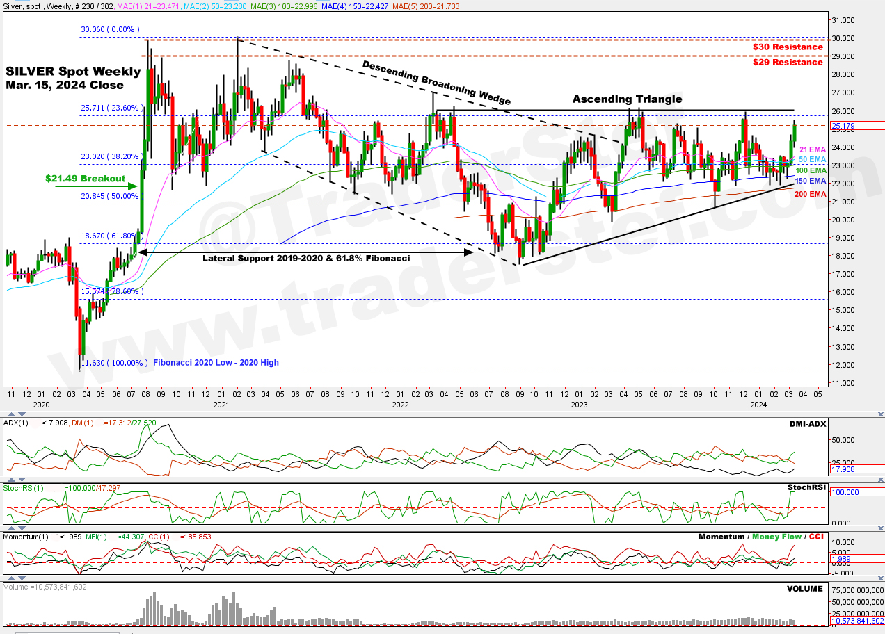 Silver Spot weekly chart as of Mar. 15, 2024 close…