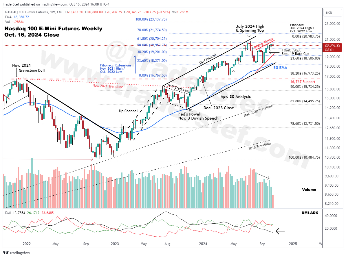$NDQ Nasdaq 100 E-Mini Futures ($NQ1) weekly chart Oct. 16, 2024 close…