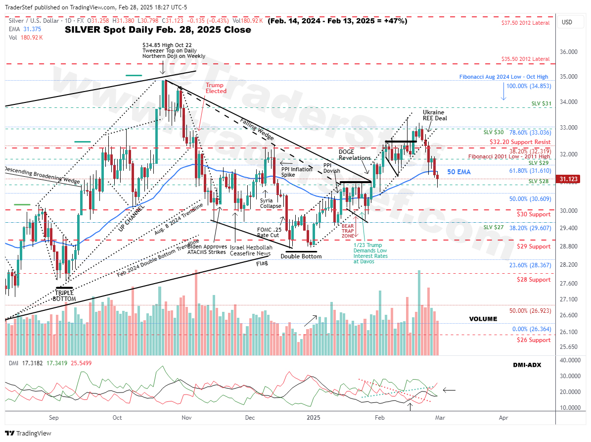 Silver Spot daily chart as of Feb. 28, 2025 close…