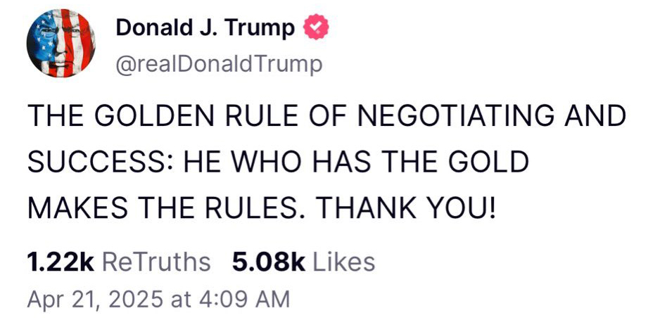 - “He Who Has The Gold Makes The Rules” – President Trump