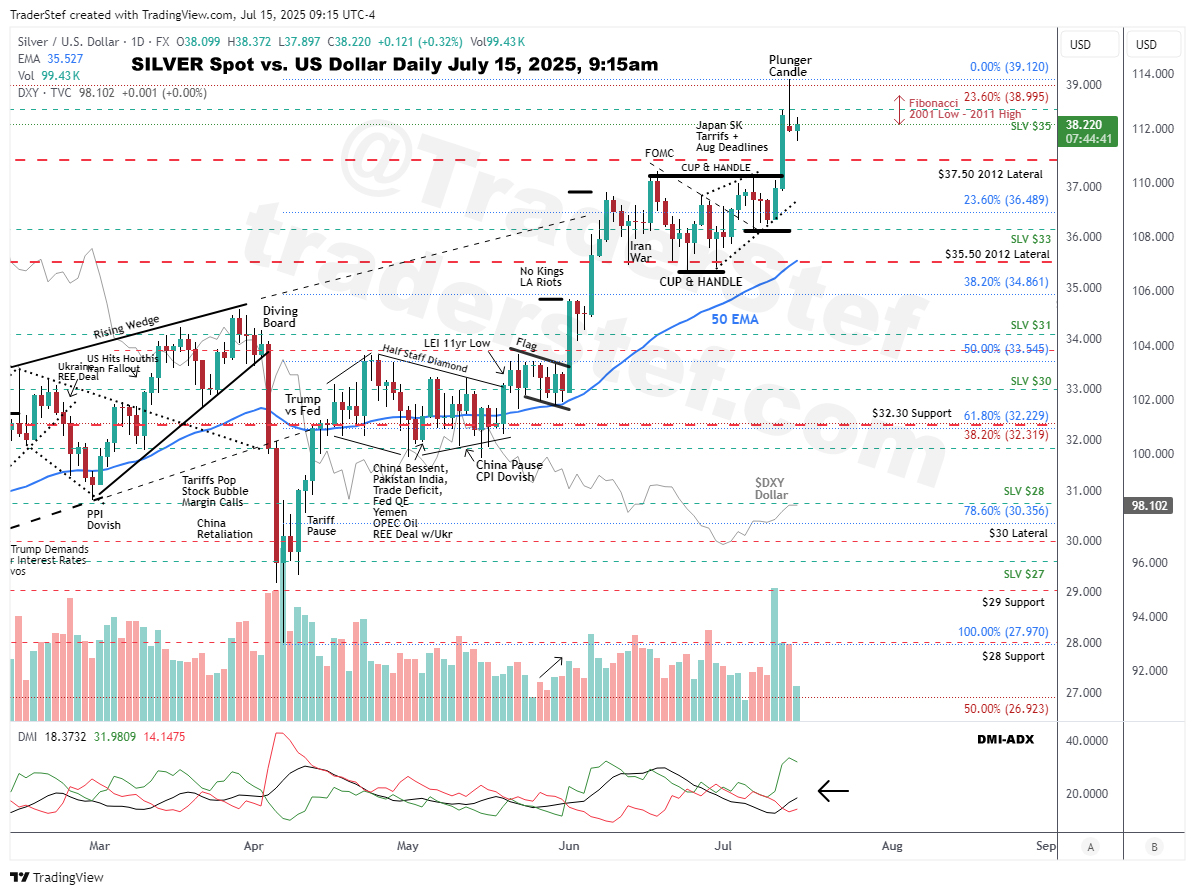 A quick update on the Silver Spot price action as an exclusive for Substack peeps today. Here is a daily chart as of 9:15am ET on Jul. 15, 2025: