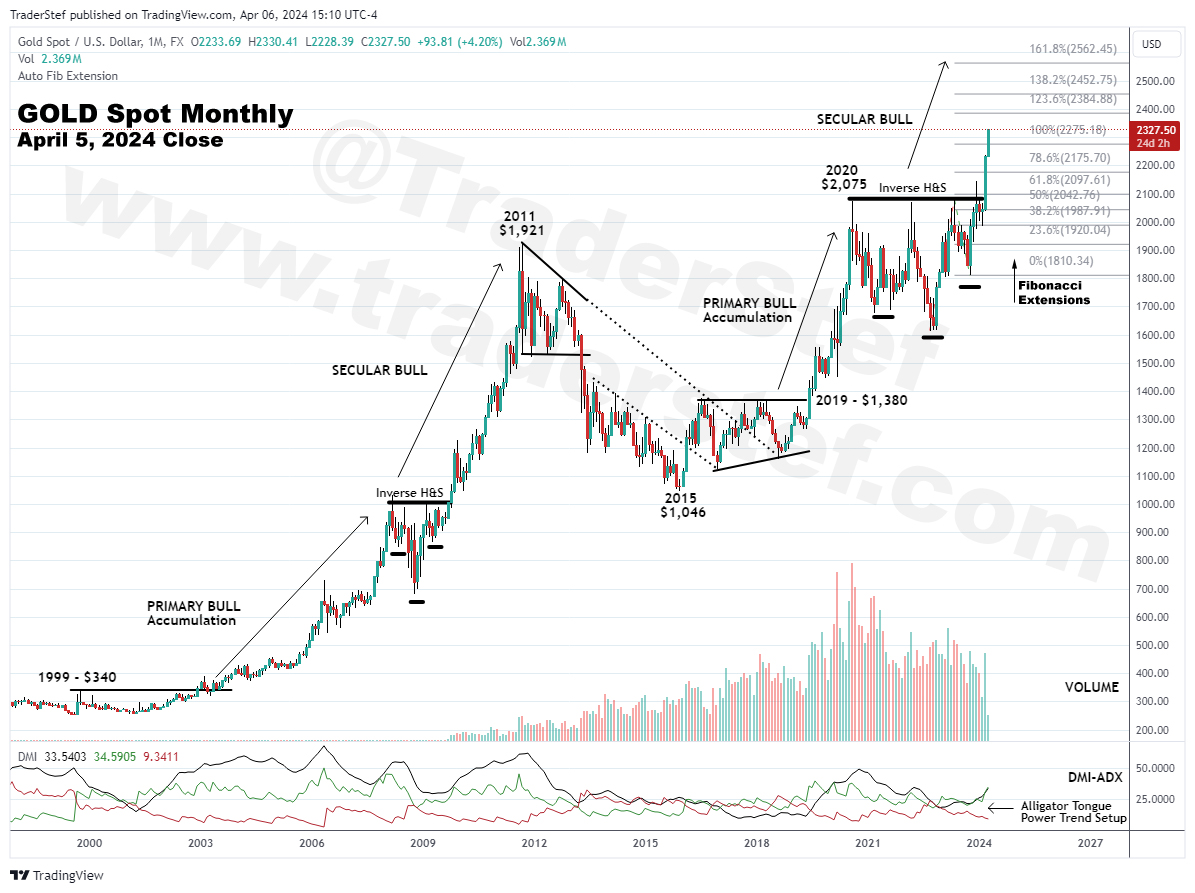 It was a busy spring and summer this year working on projects at major concert venues, and I only had time to intermittently post precious metal & current event updates on X threads. Since my most recent analyses (mirrored at SubStack) published for silver on July 15 ( thread), and gold on July 22 (X thread), the price action in constitutional sound money are having a tremendous rally to all-time highs (ATH). As I pound away at the keyboard early this morning, gold’s renewed secular bull run has continued to roar after decisively leaving the 2020-2024 $2,075 per ounce ATH in the dust back in March 2024 (chart) following an Inverse Head & Shoulders consolidation pattern, and silver is only $1 away from challenging its infamous 2011 high around the $50 zone.