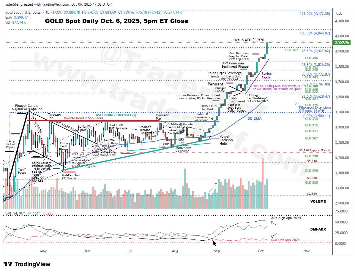 Gold Spot daily candlestick chart as of Oct. 6, 2025 at 5pm ET close…