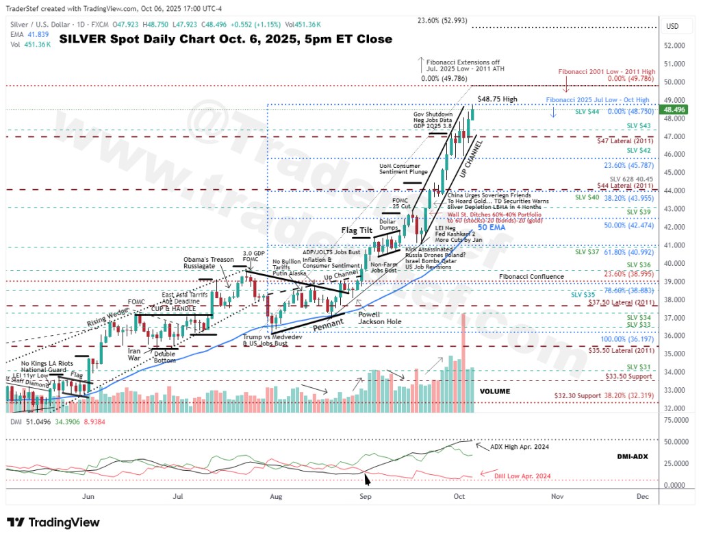 Silver Spot daily candlestick chart as of Oct. 6, 2025 at 5pm ET close…
